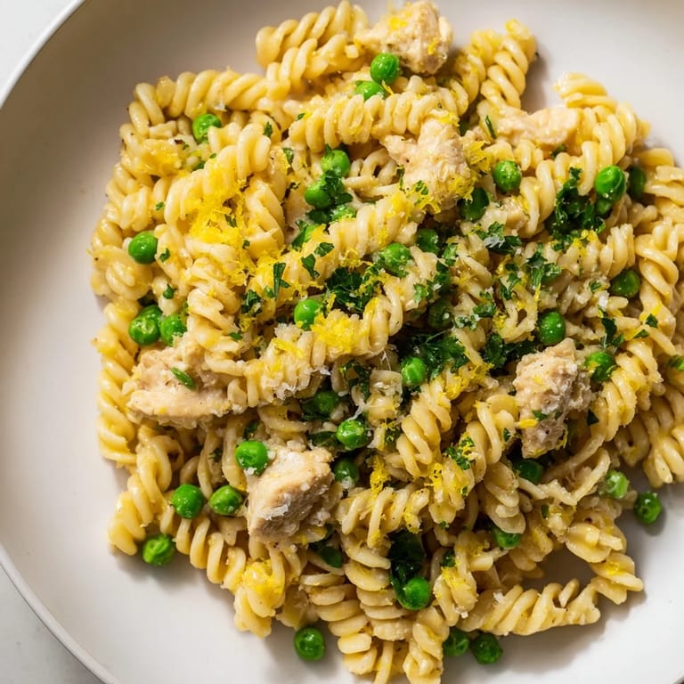If Im short on time, I use rotisserie chicken torn into pieces and just toss it in with the peas to warm through, skipping the whole browning step. You can swap the peas for spinach, broccoli florets, or even cherry tomatoes if thats what you have on hand. For a creamier version, stir in a few tablespoons of heavy cream with the pasta water, though I rarely bother because the butter and Parmesan already make it feel indulgent.